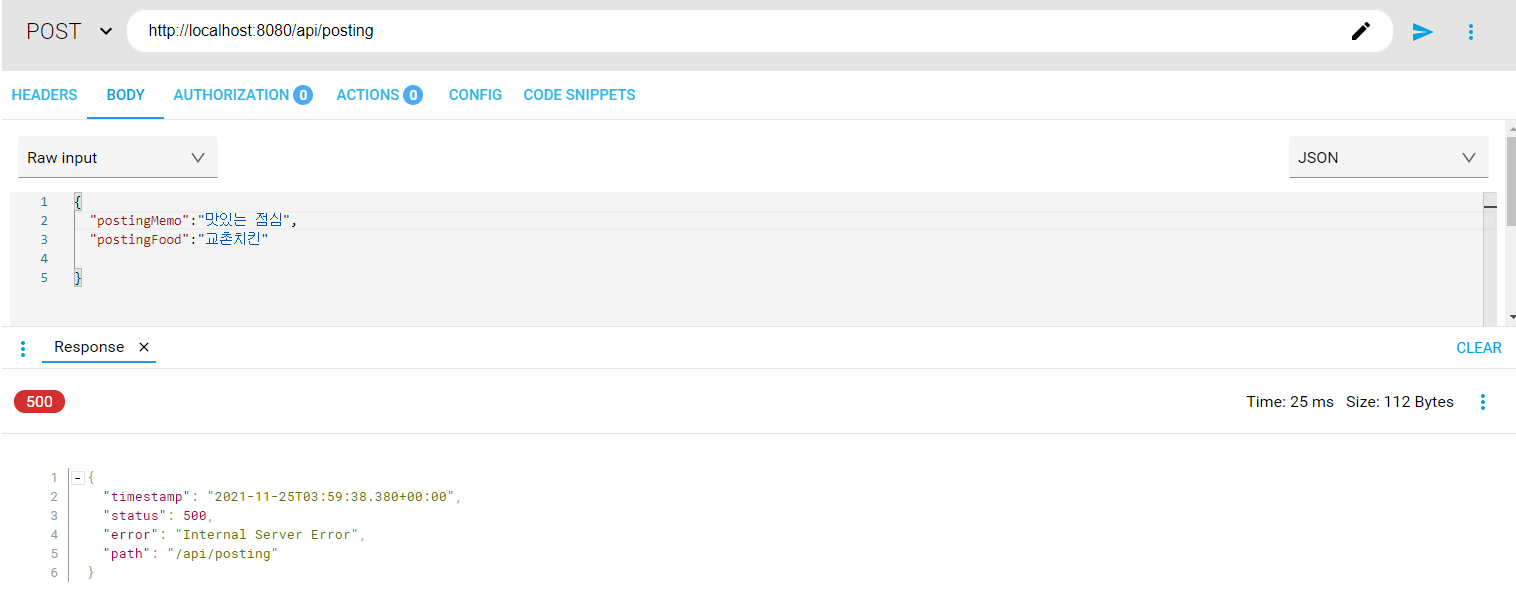 원인: PostingFood 를 입력하지 않았는데 nullable = false이기 때문. postingFood값을 넣어주거나 nullable 을 참조화한다.