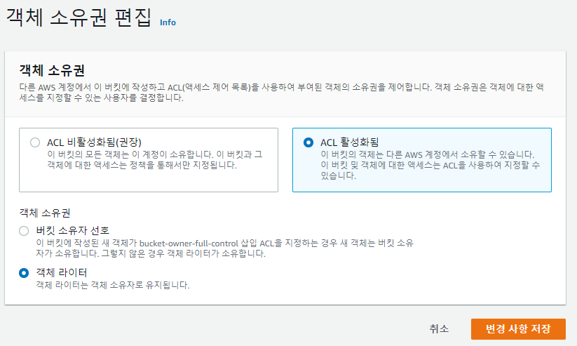 (1) 버킷의 모든 퍼블릿 액세스 차단 비활성