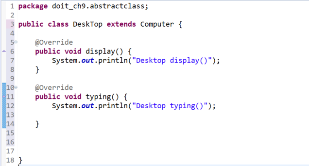 하지만 display(), typing()은 하위 클래스에 따라 구현이 달라질 수 있다.
