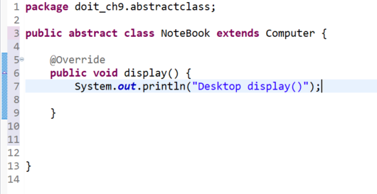 MyNoteBook 은 모든 추상메서드가 구현되었기 때문에, abstract 예약어를 사용하지 않는다.