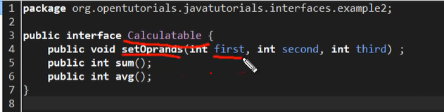-인터페이스에서 선언한 메서드는 모두 구현 코드가 없는 추상 메서드다. public abstract 예약어를 쓰지 않아도, 컴파일 과정에서 자동으로 추상메서드로 변환된다.