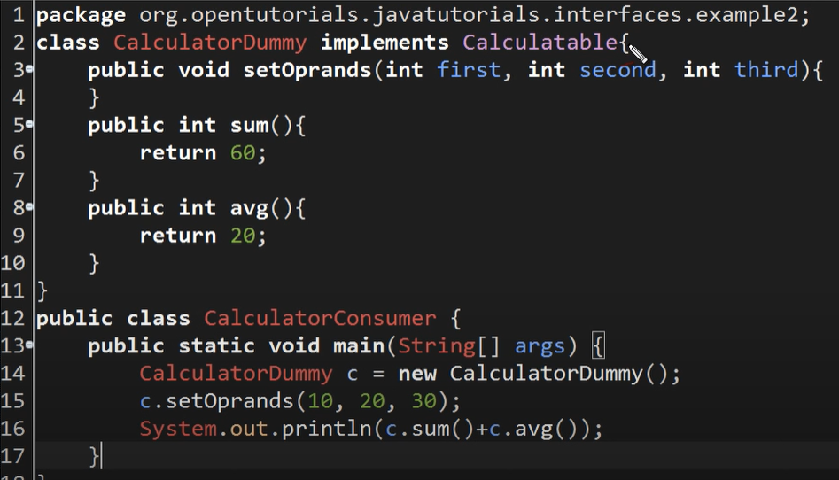 이렇게 interface 를 공유할 경우, calculator 라는 클래스가 모두 구현되지 않아도, calculator 클래스를 어떻게 사용할지 알 수 있다. 개발자 A도 Calculatable 을 구현하면서 설계되기 때문에 B와 A가 의도된 방향으로, 같은 맥락에서 개발을 진행할 수 있다. (그리고 이 모든 것이 코드단에서 구현되는 것이다!)