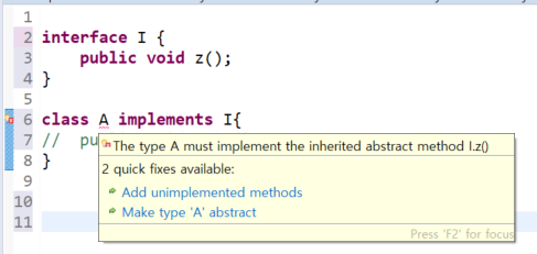 -인터페이스를 implement 할 때는, 메서드를 구현해줘야 한다.