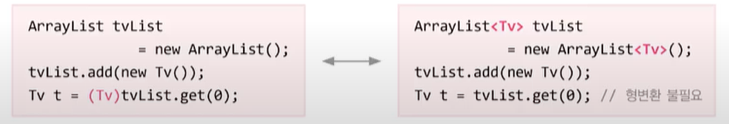반면 오른쪽예제에서는 tvLIst가 <Tv> 형이기 때문에 형변환이 불필요하다.