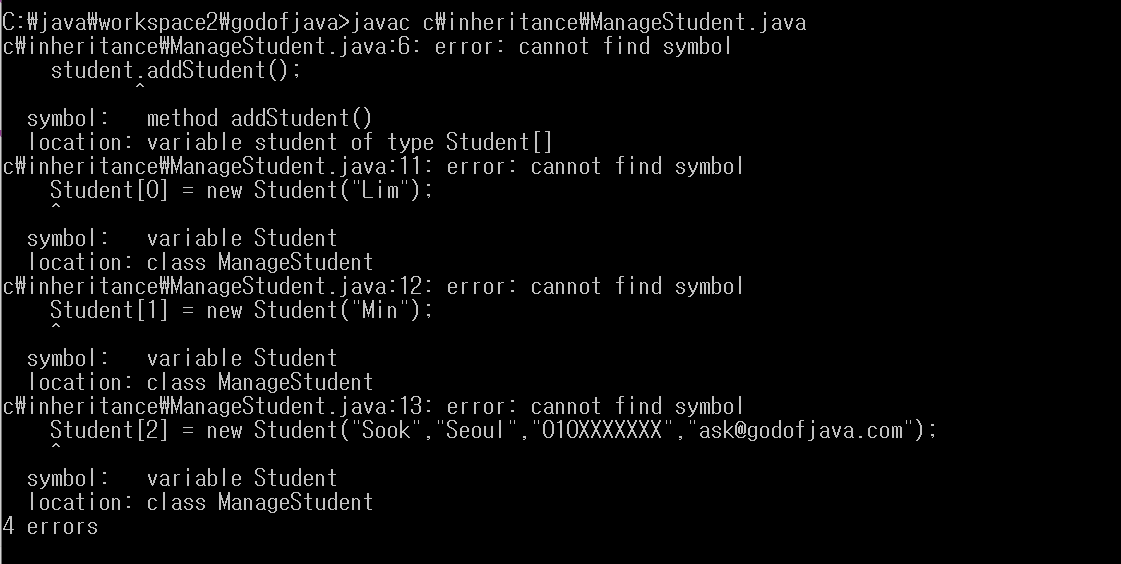 student[2] = new Student("Sook", "Seoul", "010XXXXXXXX", "ask@godofjava.com");
