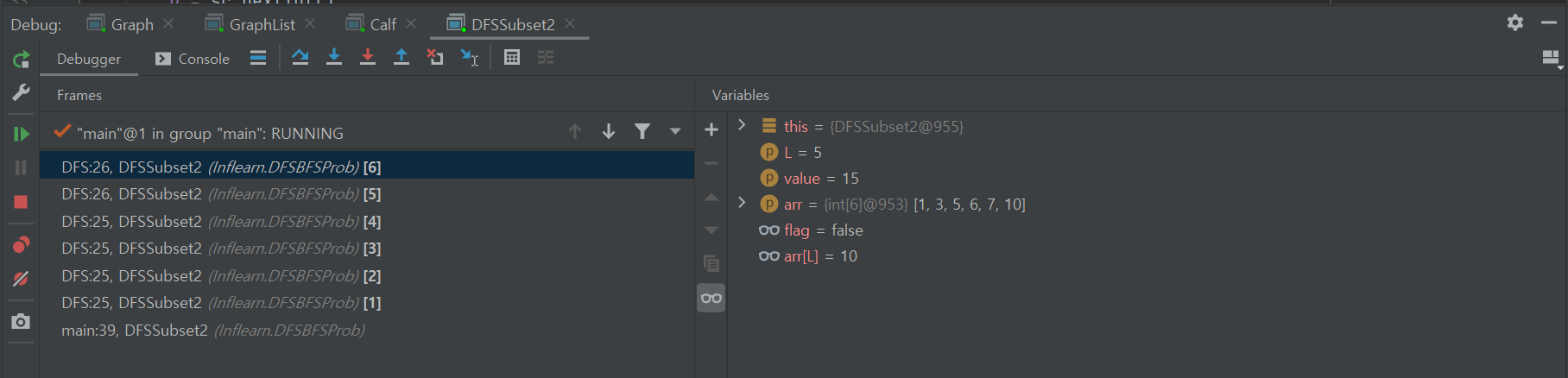 public void DFS(int L, int value, int[] arr){