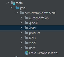 - 회원 가입, 제품, 주문 등의 기능(feature) 별로 패키지를 두고, 패키지 내에 레이어드 아키텍처를 구성했습니다