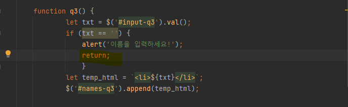 (3) 값을 없애고 싶을 때 - return 넣어주기.