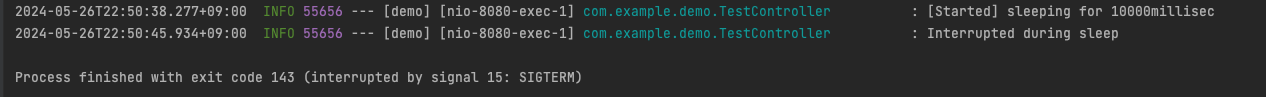 10초 동안 sleep 을 걸었는데, 만약 10초의 작업이 끝나기 전에 프로세스 종료 요청이 온다면 어떻게 될까? (