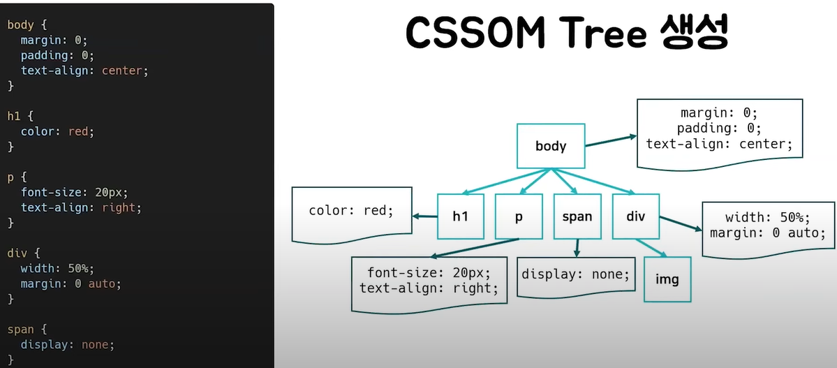 CSS - CSSOM TREE (DOM 이 화면에 어떻게 표시될지를 알려주는 역할)